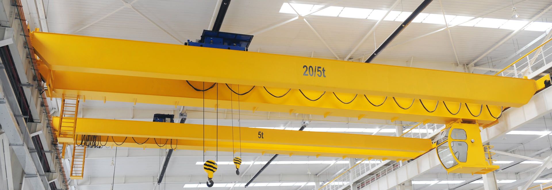 橋式起重機是橫架于車間、倉庫和料場上空進行物料吊運的起重設備。由于它的兩端坐落在高大的水泥柱或者金屬